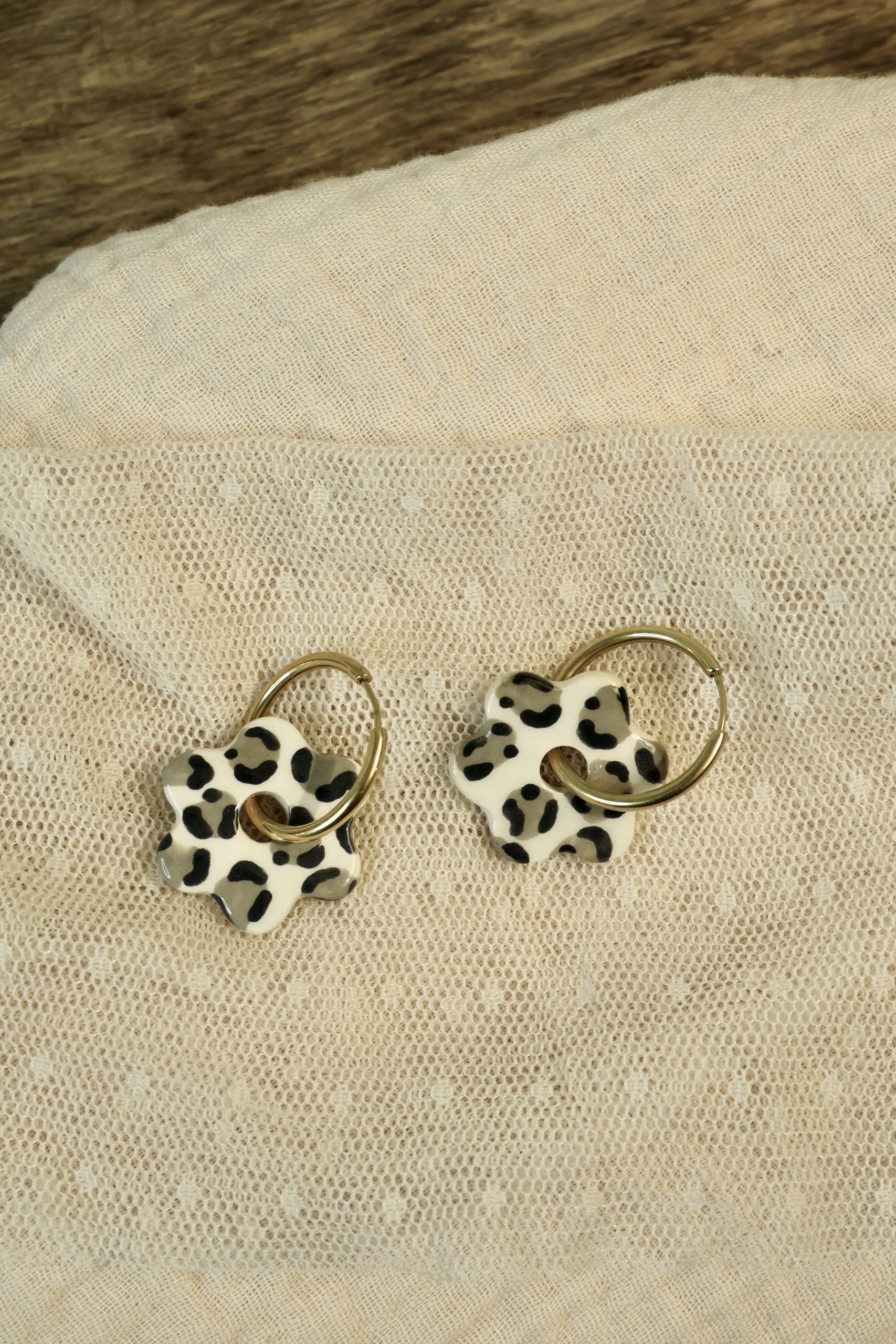 Paire de boucle d’oreille en faïence, entièrement fabriquée et décorée à la main selon la technique de la plaque. Chaque pièce est unique et ne se ressemble pas.