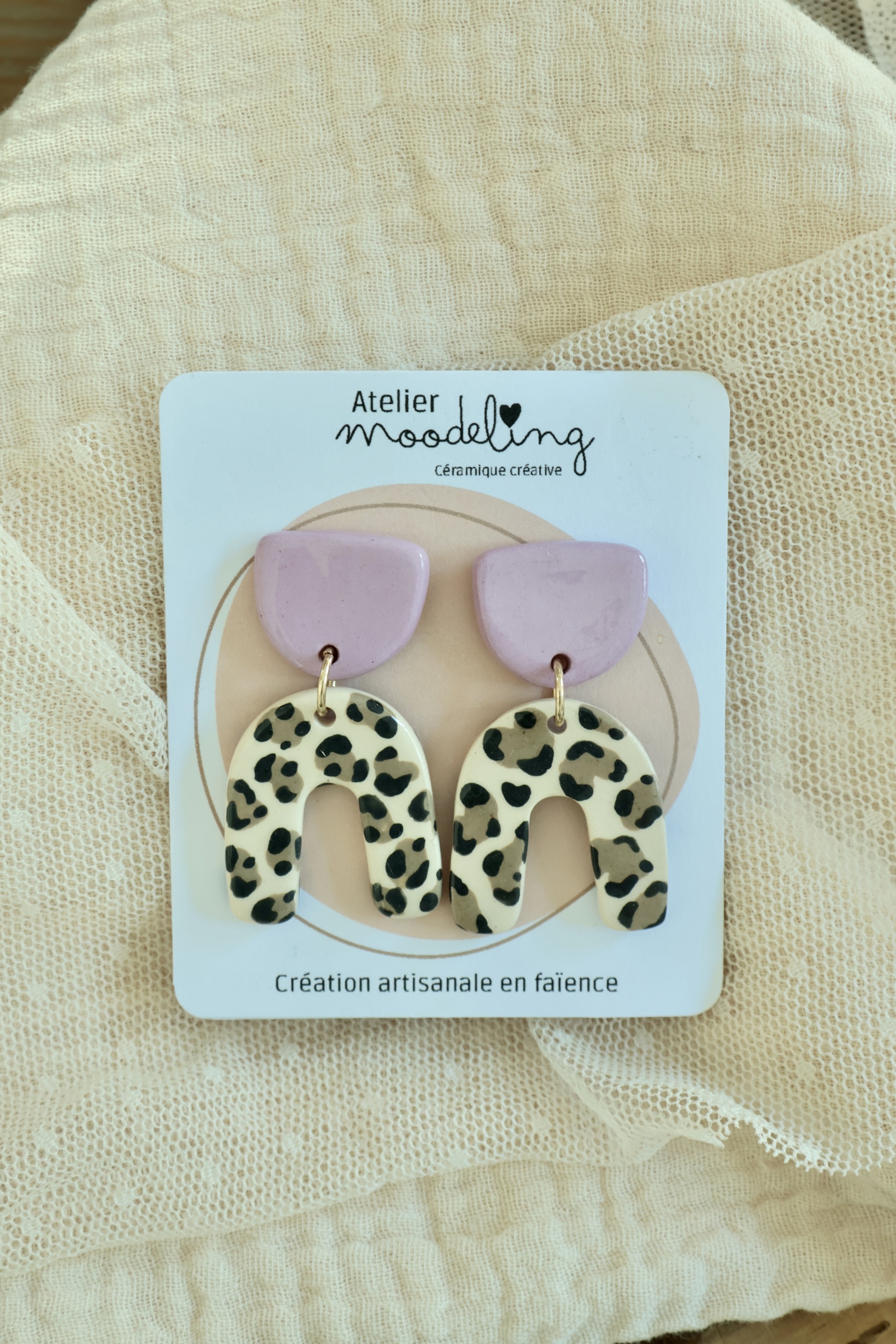 Paire de boucle d’oreille en faïence, entièrement fabriquée et décorée à la main selon la technique de la plaque. Chaque pièce est unique et ne se ressemble pas.