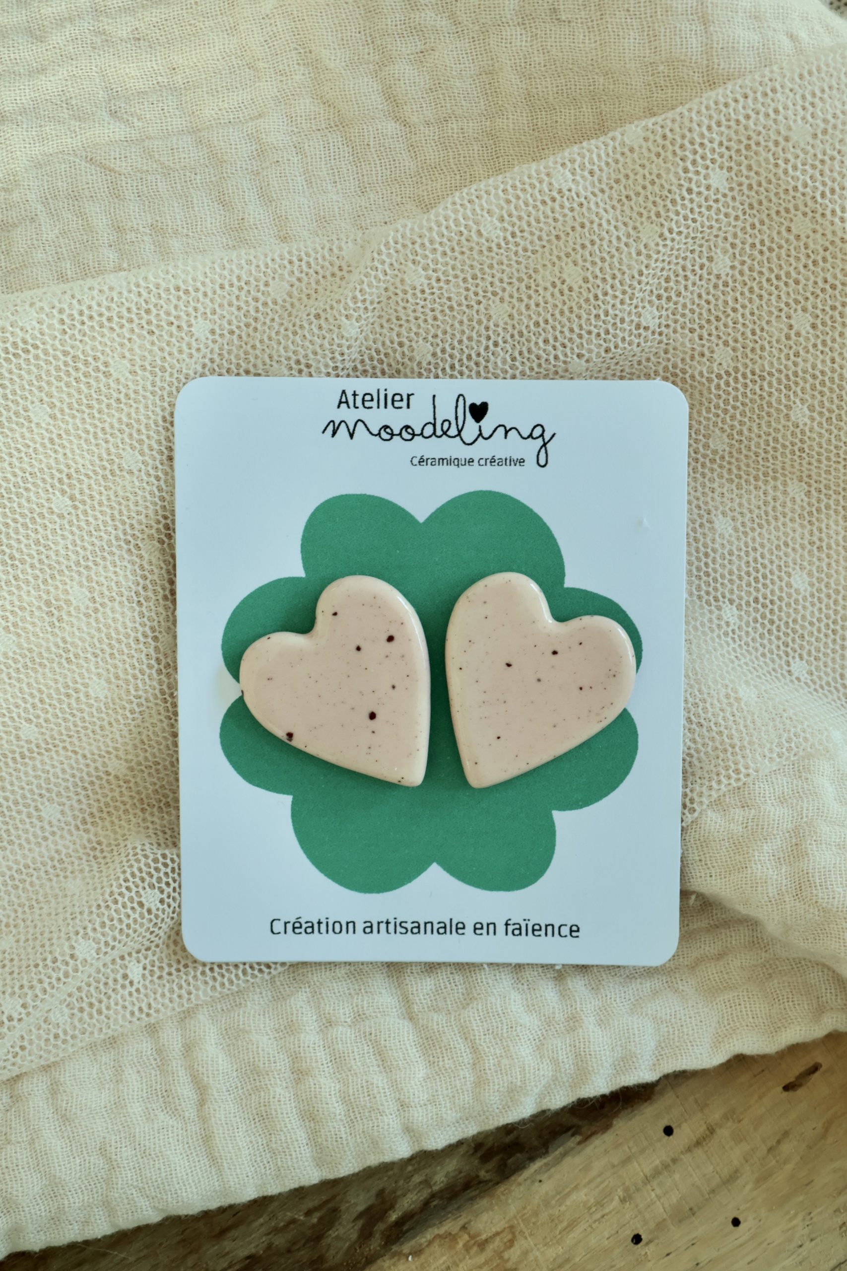 Paire de boucle d’oreille en faïence, entièrement fabriquée et décorée à la main. Chaque pièce est unique et ne se ressemble pas.